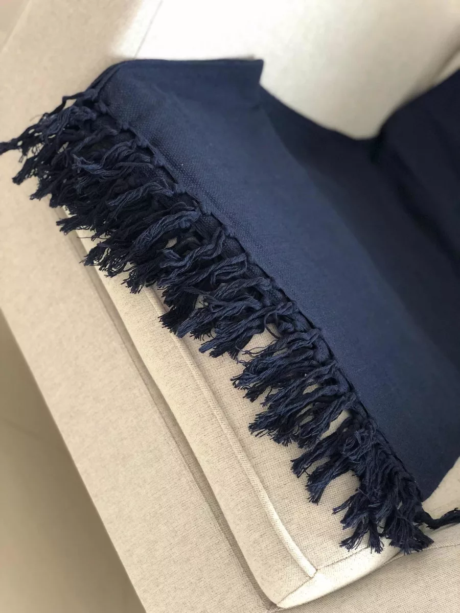 A franja com detalhe impecável de nós feito a mão um a um , dando capricho e qualidade para o produto.
