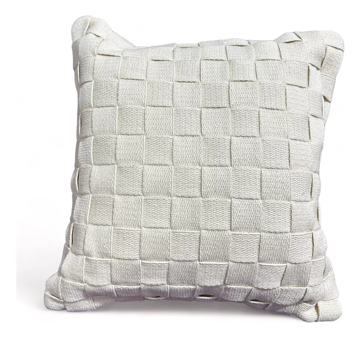 Um trançado 100% artesanal onde tiras de mamucaba (que dão reforço às redes) foram reinventadas e formaram essa técnica exclusiva. O tecido é reciclado, não passa por processo de tingimento, não agredindo o meio ambiente.